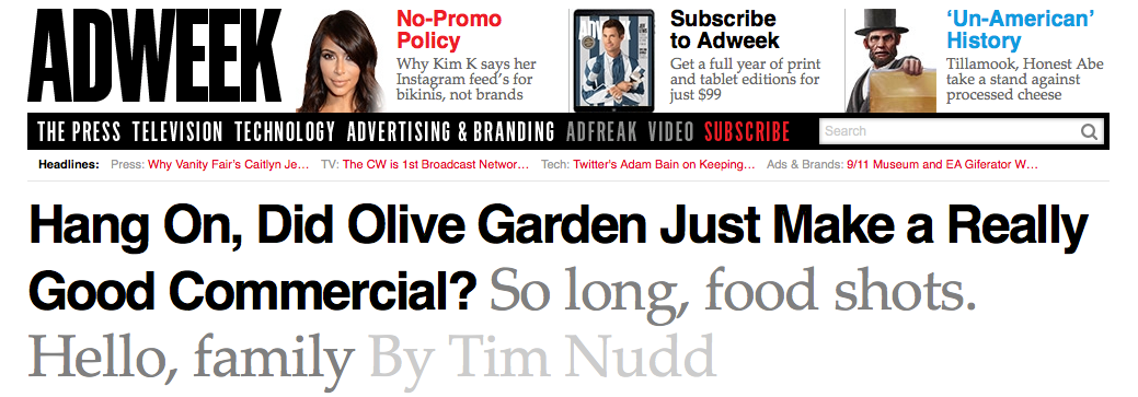 More than a few publications took notice when we created something emotional for Olive Garden.